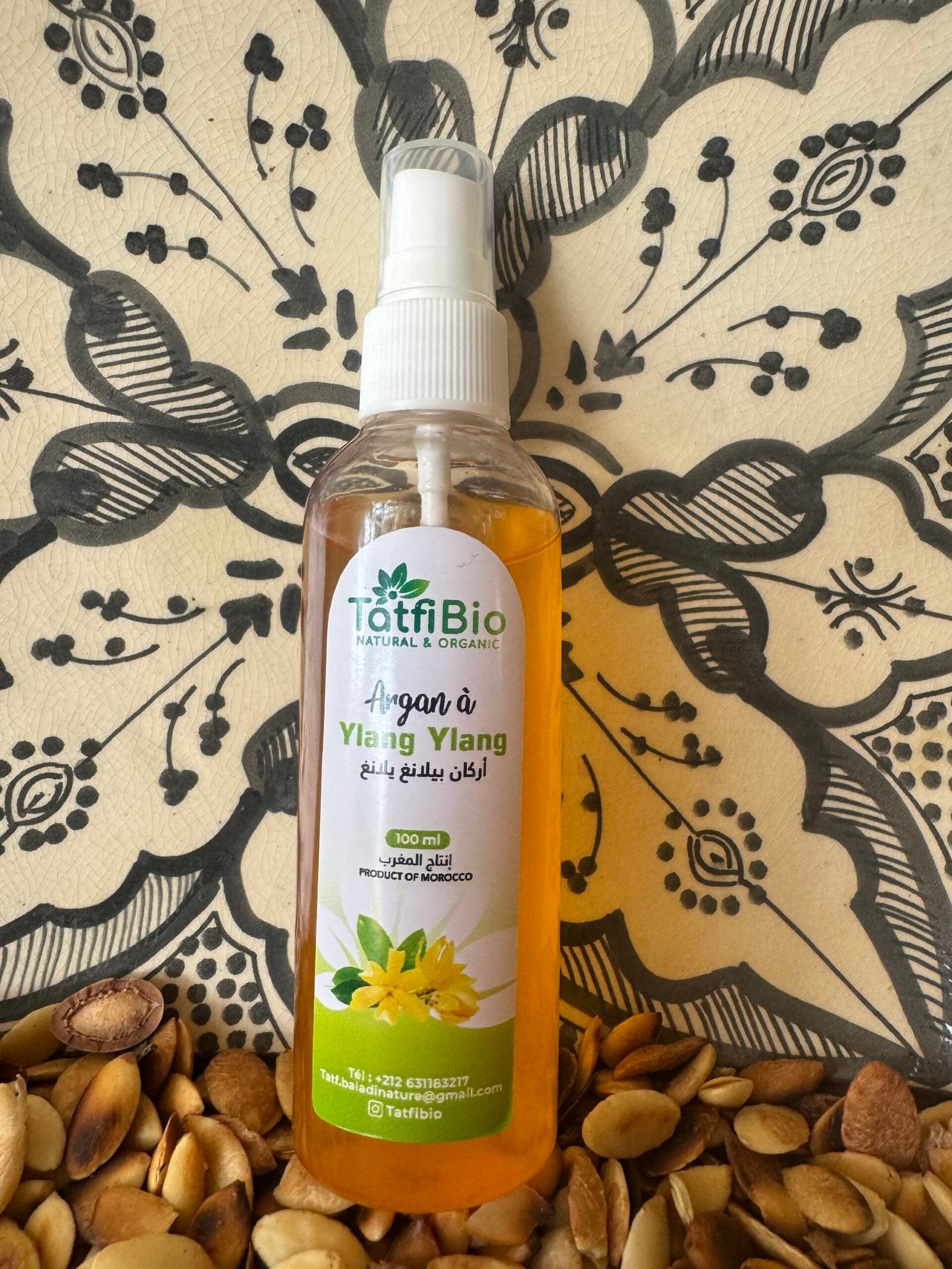 Discover the harmony of nature with Tatfi Bio Argan Oil infused with Ylang Ylang — a luxurious blend that deeply nourishes the skin, strengthens hair, and uplifts the senses.